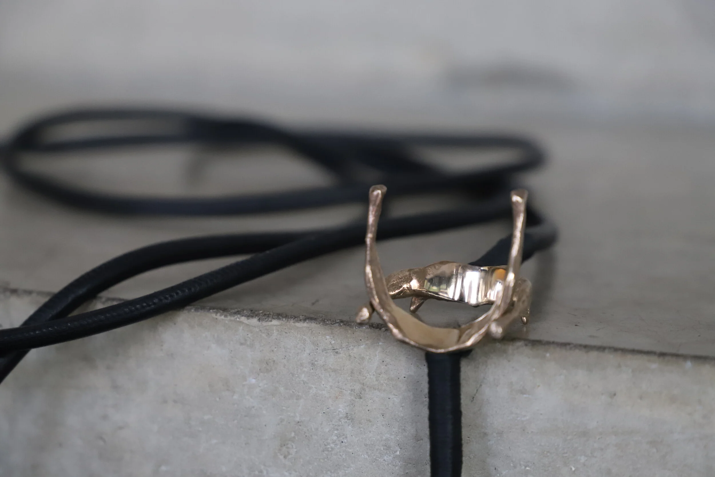 Bronze, leather, chord.